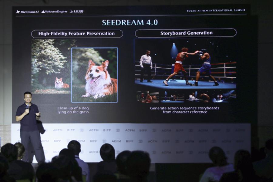 9月22日,第30届釜山国际电影节上,一场名为“未来影像”的AI电影国际峰会引发业界关注。在这场由即梦AI、火山引擎与上海电影联合主办的峰会上,中国导演梁鸣、制片人李少伟、摄影指导夏永康、美术指导王竞等来知名电影人、行业专家,在峰会现场共同探讨了AI技术对于影视行业的影响。峰会还展映了5支AI短片。这些短片来自“未来影像计划”全球征集活动,由来自中国、韩国等地的创作者使用即梦AI等AI工具独立完成。在火山引擎Seedance、Seedream等模型支持下,少年时期幻想中的好朋友、10年前记忆深刻的梦境、更具现实意义的反叛童话等故事有了可视化的影像表达。